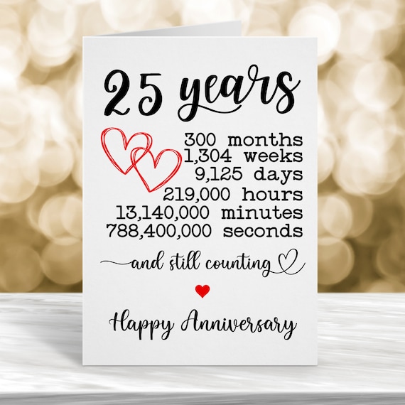 25th Wedding Anniversary Card, 25 Year Anniversary Card, 25th Year